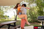 Brunette Alana Rose gets pounded by Kaby Snow's massive BBC in raw interracial action. Gallery opens with her on all fours, pussy creampied and dripping cum, then doggy-style thrusting as he grips her ass. She rides reverse cowgirl, facesits his tongue, spreads for missionary penetration and dildo teasing. Kneeling blowjobs with deepthroat, holding his thick shaft; car road head in orange top and shorts. Teases in thong, booty shorts, no bra, hard nipples, real tits out. Ends with semen-glazed vulva, pubic hair slick, multiple creampies filling her up in orgasmic bliss.